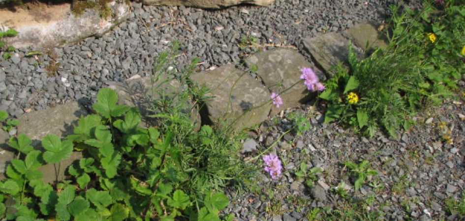 Habitat-07: Schiefergestein links der Kalkmauer